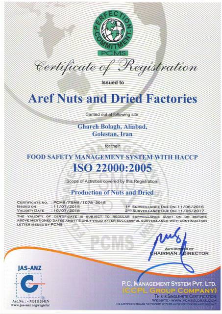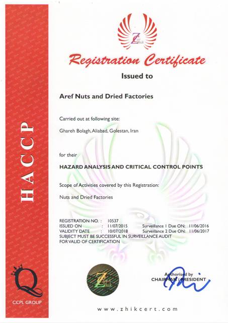 این کارخانه در زمینه تولید و بسته بندی انواع آجیل و خشکبار و انواع حبوبات ، قندوشکر و برنج سفید ایرانی فعالیت می کند و موفق به اخذ گواهینامه استاندارد ملی ایران و گواهینامه حلال و گواهینامه استاندارد بین المللی ایزو 22000 و HACCP گردید.